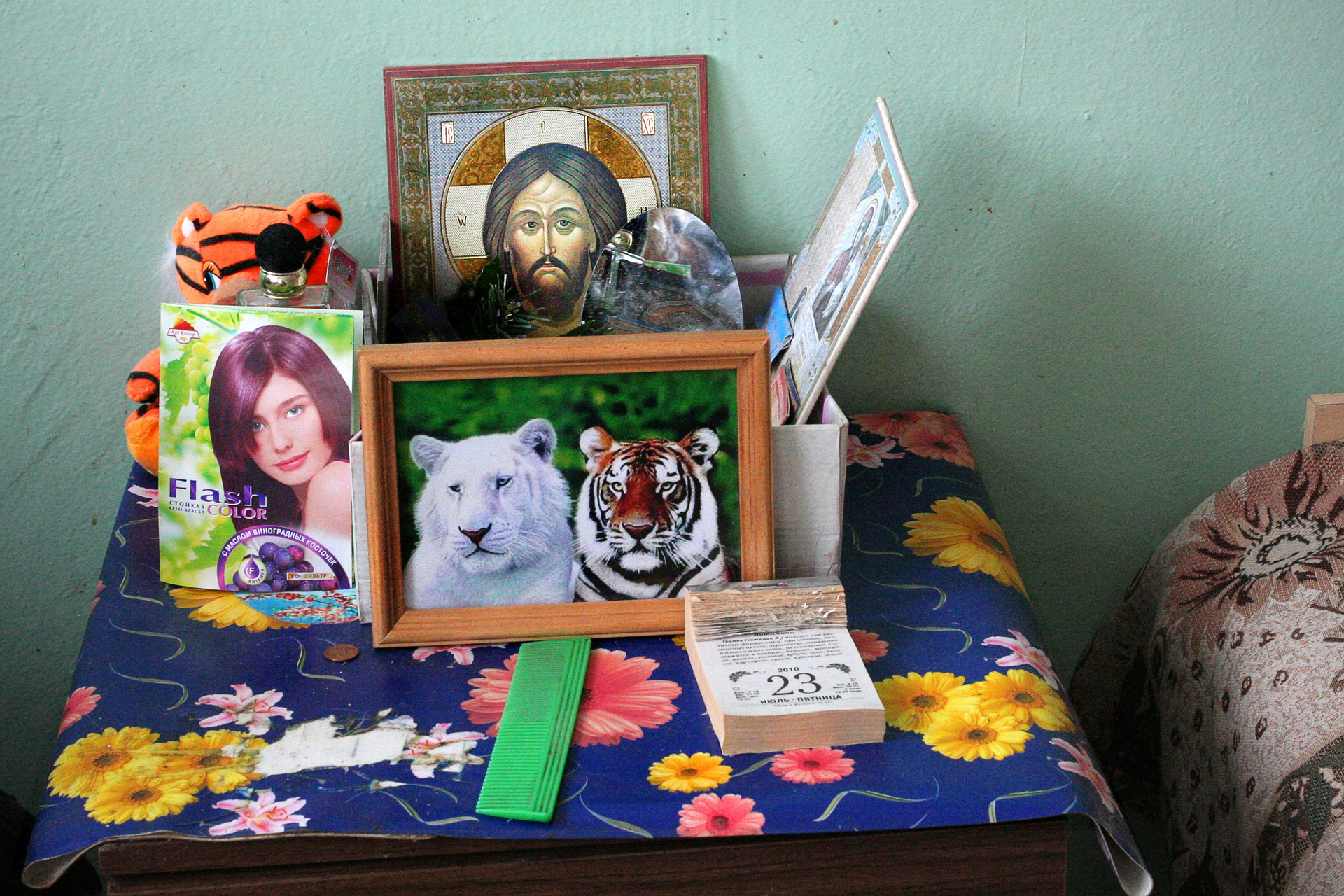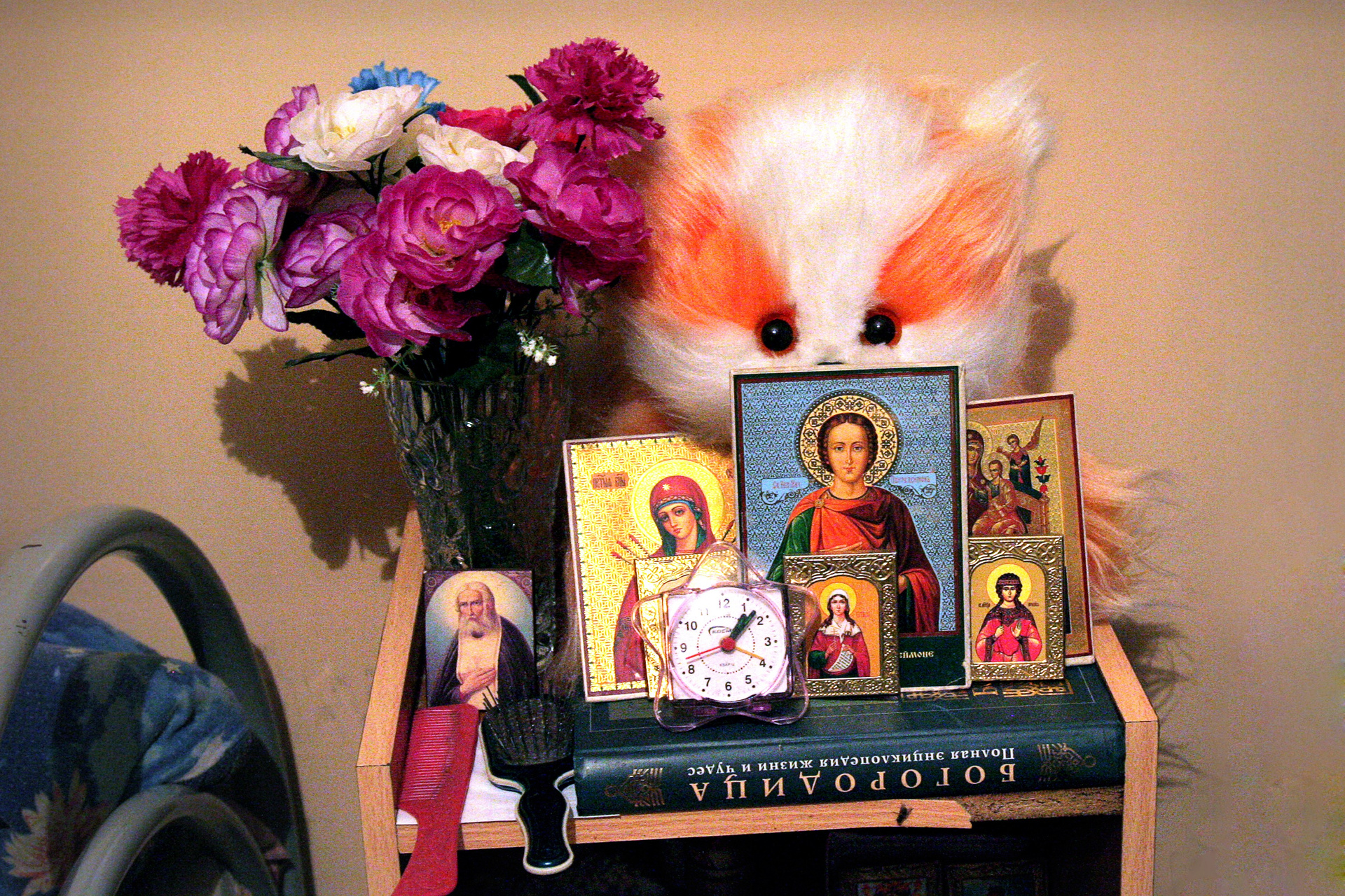 Пациенты психоневрологического диспансера материализуют свой внутренний мир. На личном пространстве — на тумбочке и стенах около кровати — они устанавливают фетиши и возводят собственные алтари.